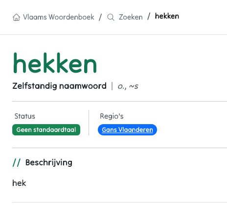 Hekken is dus hek, een hek in Nederland is een hekken in Vlaanderen.